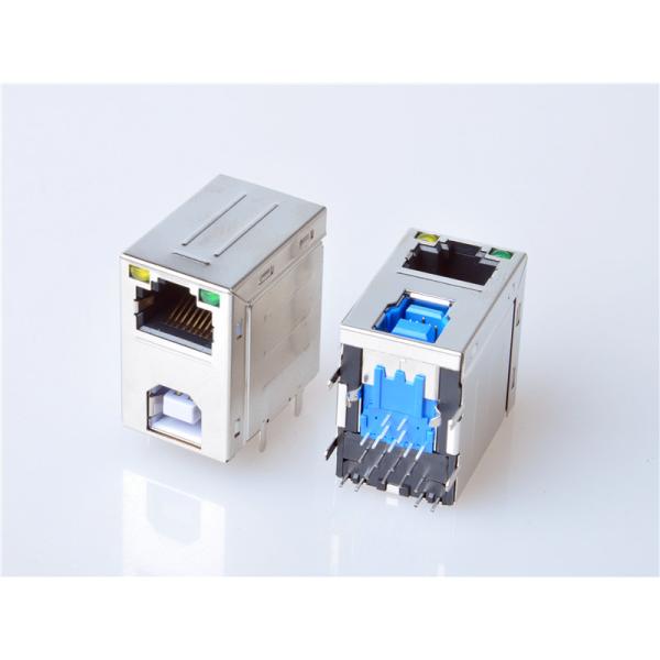 HULYN,RJ45 Modular Jack Connector, Shielded RJ45 + USB3.0 Combo Connector, Through Hole Type, LED Images |