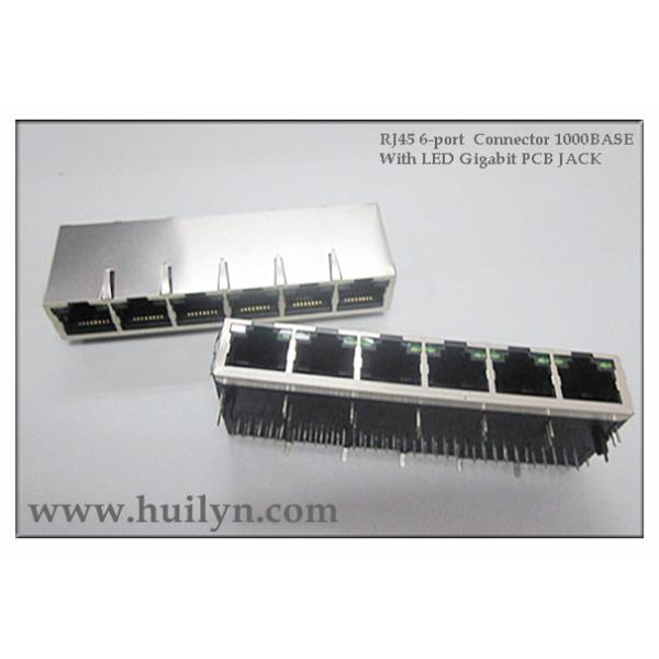 6 ports RJ45 connector with transformer,RJ45 JACK PoE, (25.4mm)1Gbps Images |